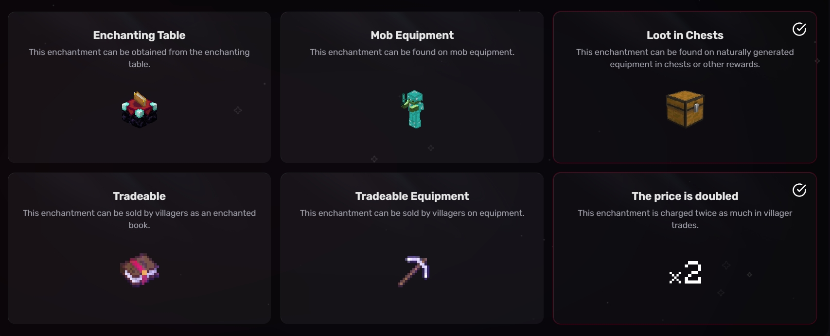 可交易装备: 村民售卖的装备可能带有该附魔。