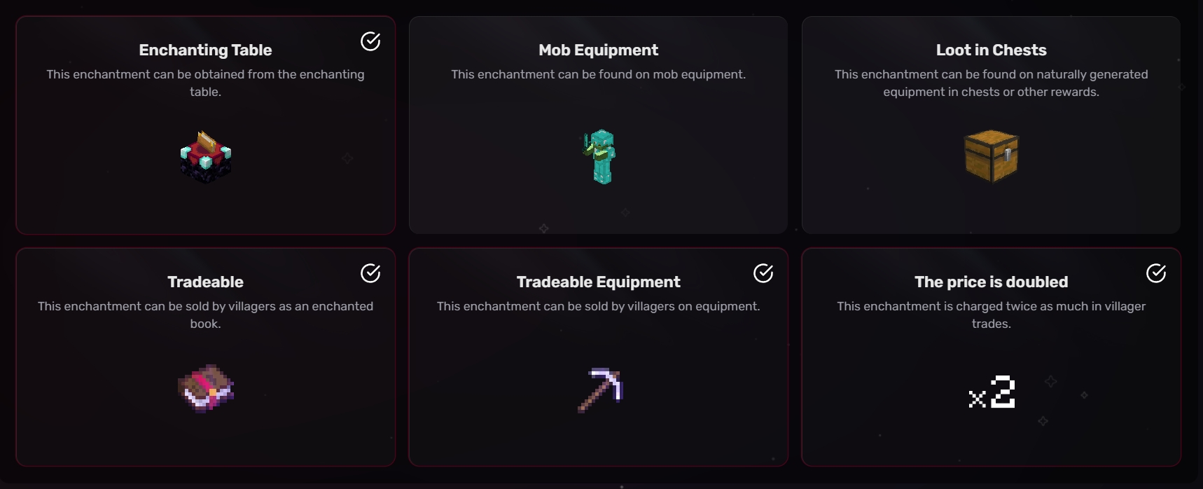 可交易装备: 村民售卖的装备可能带有该附魔。