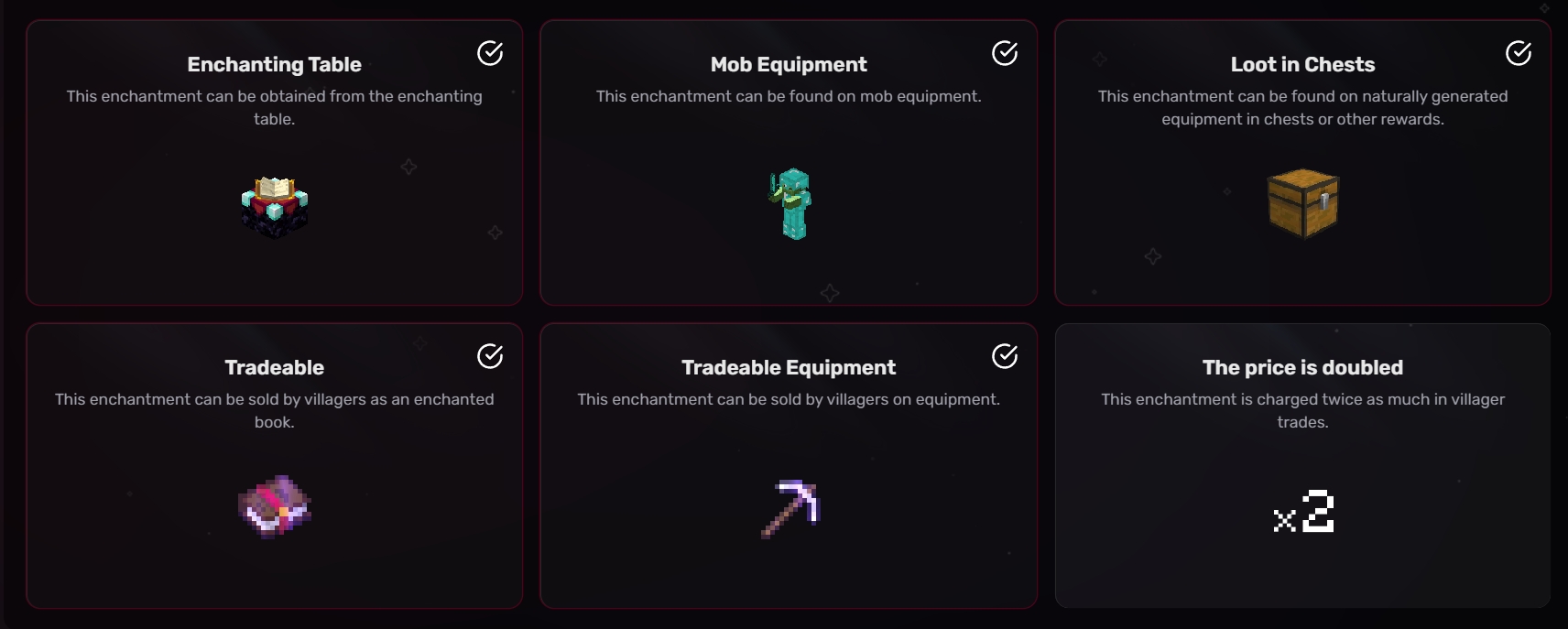 可交易装备: 村民售卖的装备可能带有该附魔。